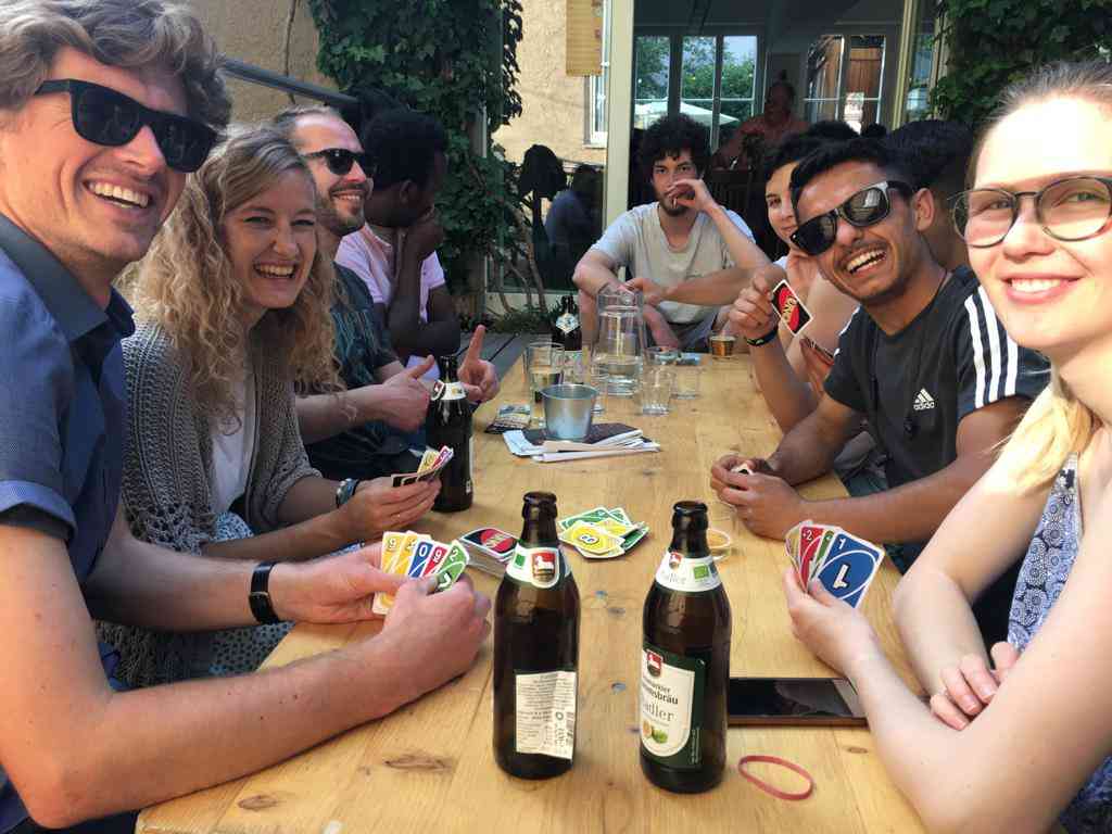 Nachdem wir gesehen haben, dass das Bellevue am Mittwoch ein Fest „Bellevue feiert E’id“ zum Ende des Fastenmonats Ramadan veranstaltet, haben wir spontan einen Ausflug dorthin organisiert. Wir haben einen sehr schönen Abend verbracht mit viel UNO und gutem Essen.